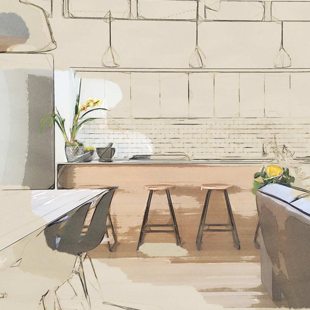 We used a specialised Photoshop plugin to create architectual sketches from photographs. We injected a little personality, since in this industry clients hire people not brands. And now the dream takes shape...