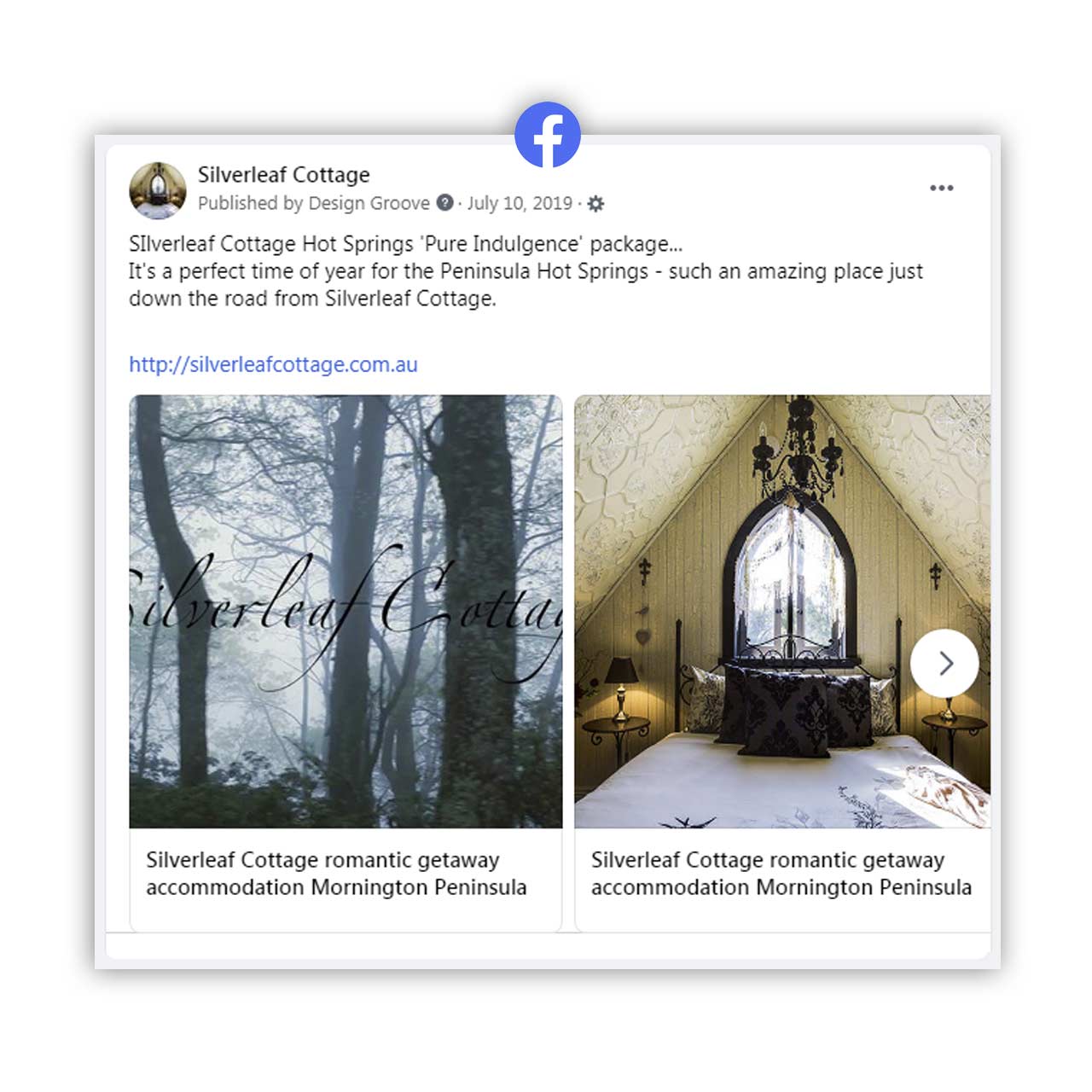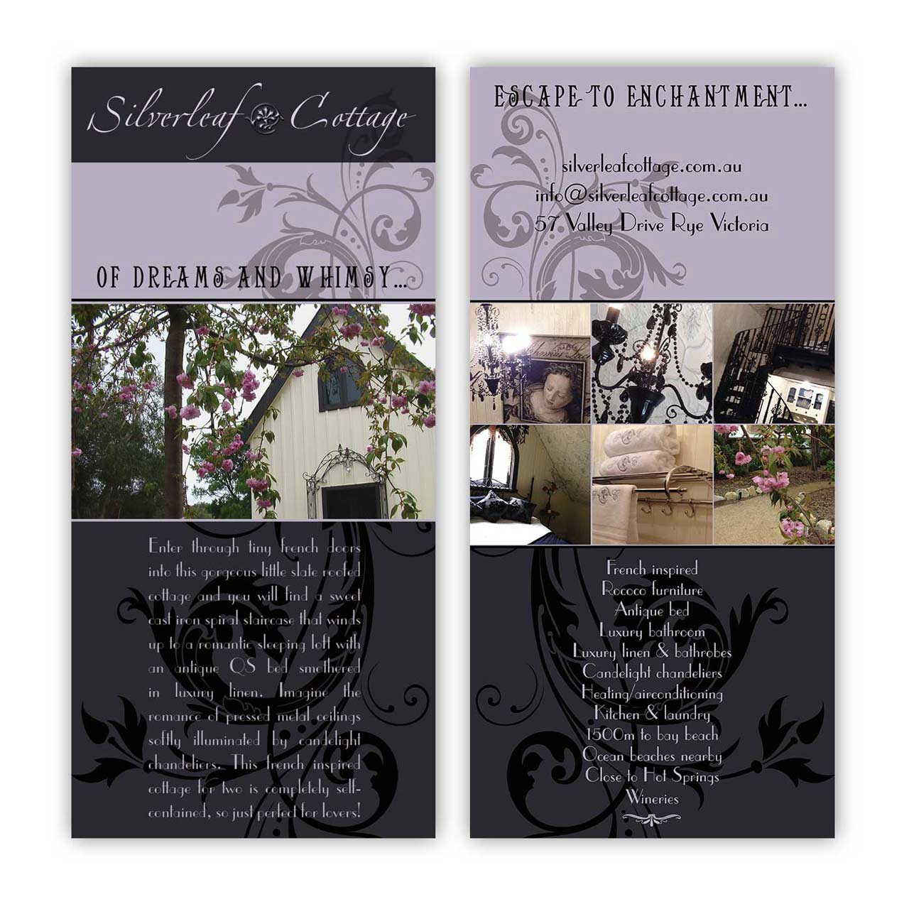 Print based marketing materials included flyers, business cards and visitor information packages. In addition to the website, social media management enabled online marketing to boost the bookings of this getaway.